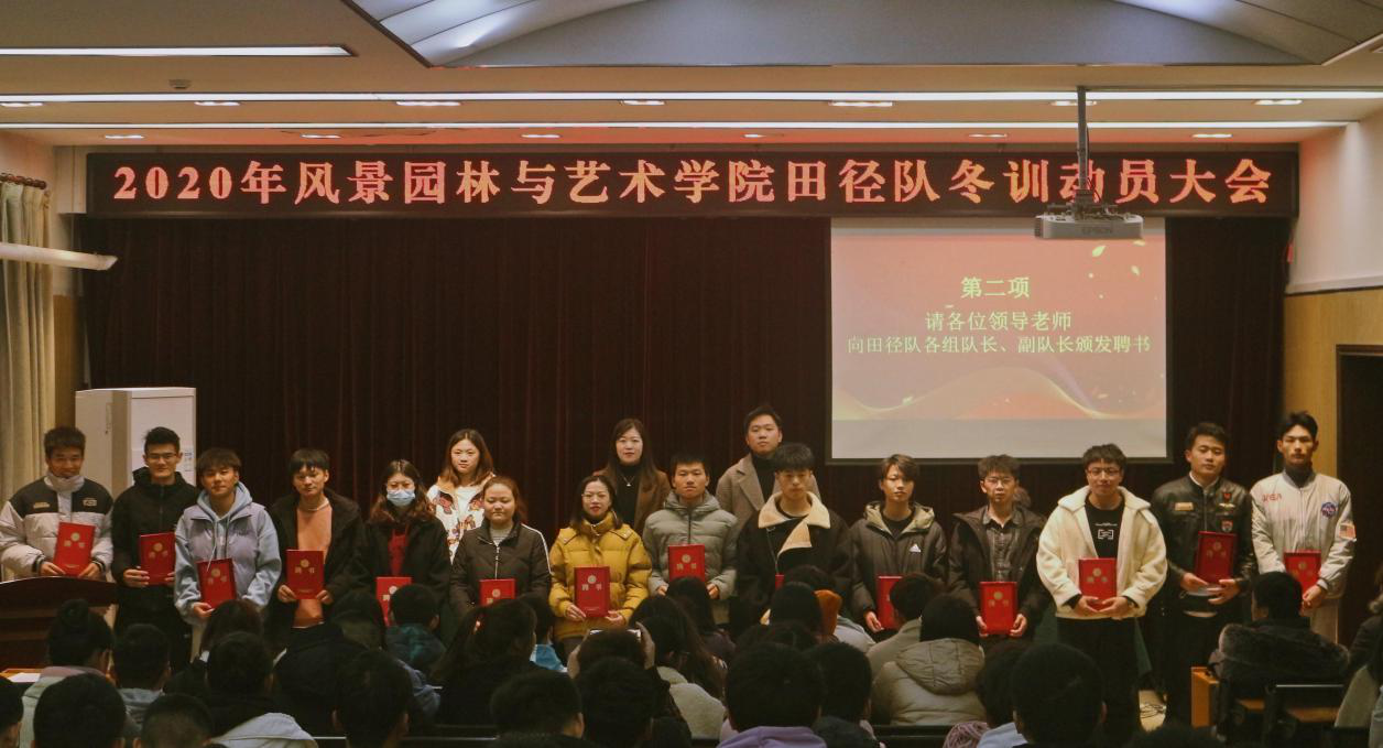 会上,李雨澍宣读2020年丝袜av 田径队队员名单,各位老师向田径队队长、副队长颁发聘书,并对运动员们在以往比赛中取得的优异成绩给予充分肯定。学生会体工委负责人向阳宣读丝袜av 田径队冬训时间安排及纪律要求。2018级风景园林2班冯浩哲作为优秀运动员代表发言,他提出冬训是基础训练的最佳时期,运动员要听从队长安排,立足自身实际出色地完成训练任务。2020级产品设计3班岳亚威作为新生运动员代表发言,他表示自己会牢记初心,在训练中磨炼意志,增强体能,为丝袜av 争取荣誉。