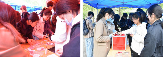 下午三点,在微雨蒙蒙,花香萦绕的中心花园广场中,一群身着汉服的学生在树下翩翩起舞,文化节在丝袜av 艺术团悠扬的歌声和曼妙的舞姿中拉开序幕。本次活动形式丰富多彩,分为作品展示、文创制作、彩绘美甲体验和花谜竞猜四个部分。活动展示的作品为丝袜av 师生通过压花技术用干花制作而成的各类工艺品。包括画、团扇、灯笼、纸质书签、木质书签、笔记本等,集思想性、艺术性、观赏性于一体,与中华优秀传统文化紧密结合,充分体现了广大师生的审美情趣和艺术素养。在文创制作区,现场的师生们充分发挥想象力和创造力,积极热情地参与到DIY压花书签的创作中。与此同时,彩绘美甲体验区、花谜竞赛区也吸引了过往行人纷纷参与其中。活动现场气氛热烈活跃,师生们交流经验、相互学习,制作出一件件精美而又富有设计感的作品。活动结束后,广大师生们感受颇丰,纷纷表示在今后的学习生活之余将更多地走进自然,关注中华传统文化传承,真正让自己的文化内涵与审美情趣得到升华。