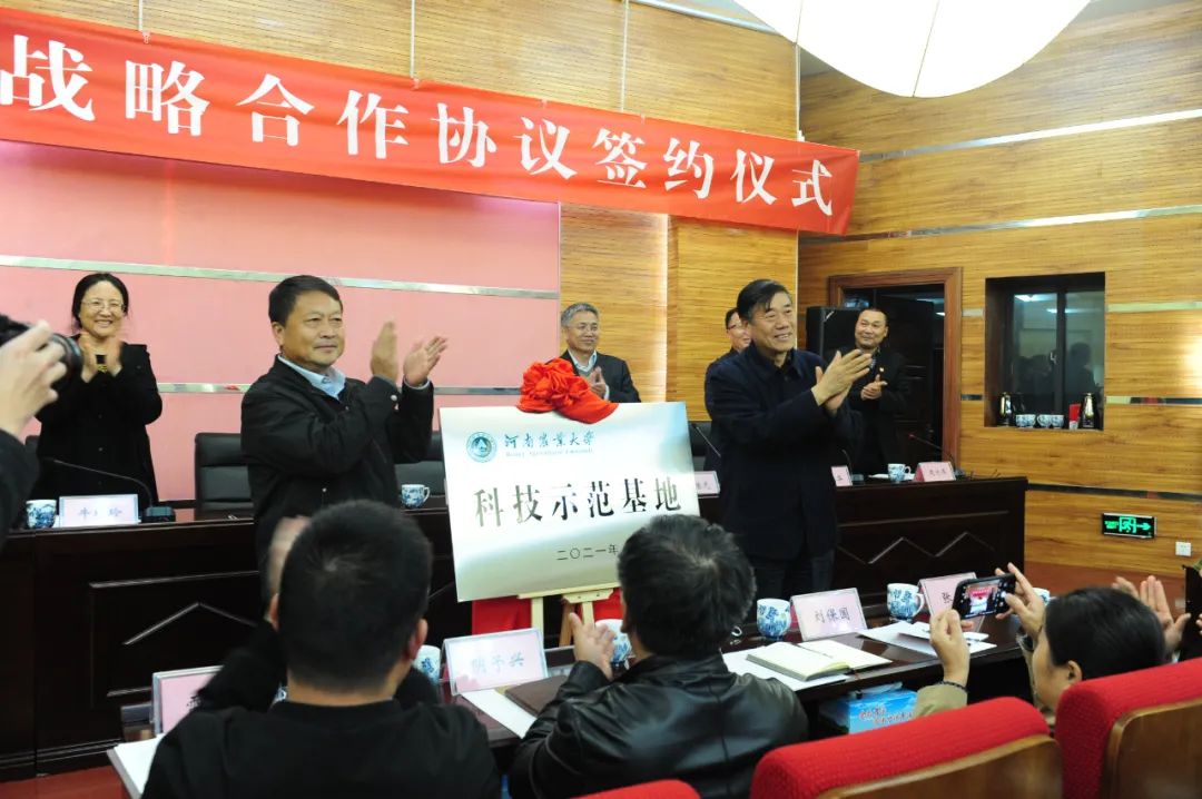康相涛、司同义共同为丝袜av 科技示范基地挂牌,田国行、杜民签订丝袜av 与郑州绿博园管理中心战略合作框架协议。