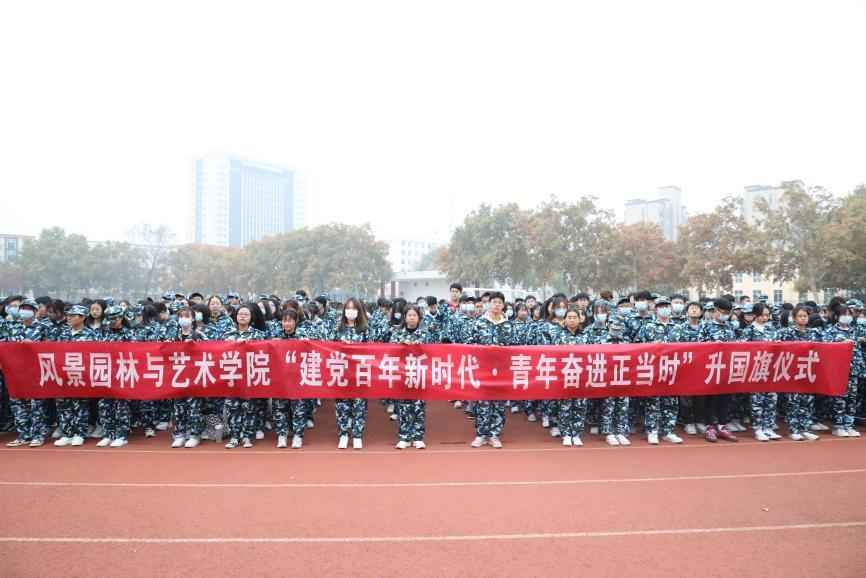院党委副书记胡明忠发表讲话。他指出,要从党的百年征程中汲取力量,赓续党的百年奋进史诗,踌躇满志,破浪前行,永葆创新拼搏前进姿态,肩负民族复兴使命,书写国家发展新篇章。随后,2021级建筑类专业4班卢欣宁和2021级设计学类专业1班赵书豪作为学生代表进行国旗下演讲《建党百年逢盛世,青春奋斗正当时》。他们表示将会秉承弘农爱国,求真创新,厚德质朴,包容奋进的精神,锤炼身心,努力做新时代合格的接班人。