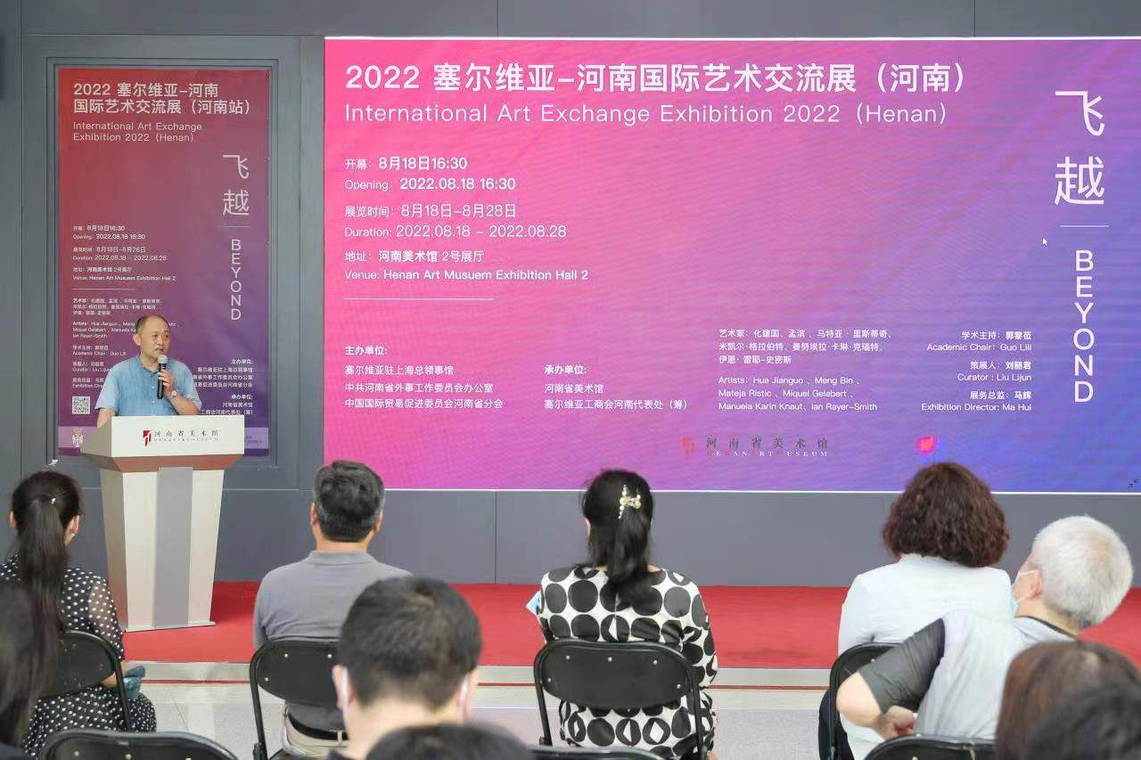 “飞越·2022塞尔维亚-河南国际艺术交流展”由河南省委外办、河南省贸促会、塞尔维亚工商会中国代表处等相关单位联合举办,活动旨在加强中塞友好合作,分别在经贸、文化、教育、卫生、基础建设等领域展开合作。河南作为农业大省,塞尔维亚已经与河南在塞尔维亚主要农业区展开了相关战略合作,此次活动是中塞友好合作的纽带,将加强中塞在更多领域展开更广泛交流合作。孟滨教授作为河南艺术家代表,其作品具有深厚的文化底蕴和极高的审美价值。