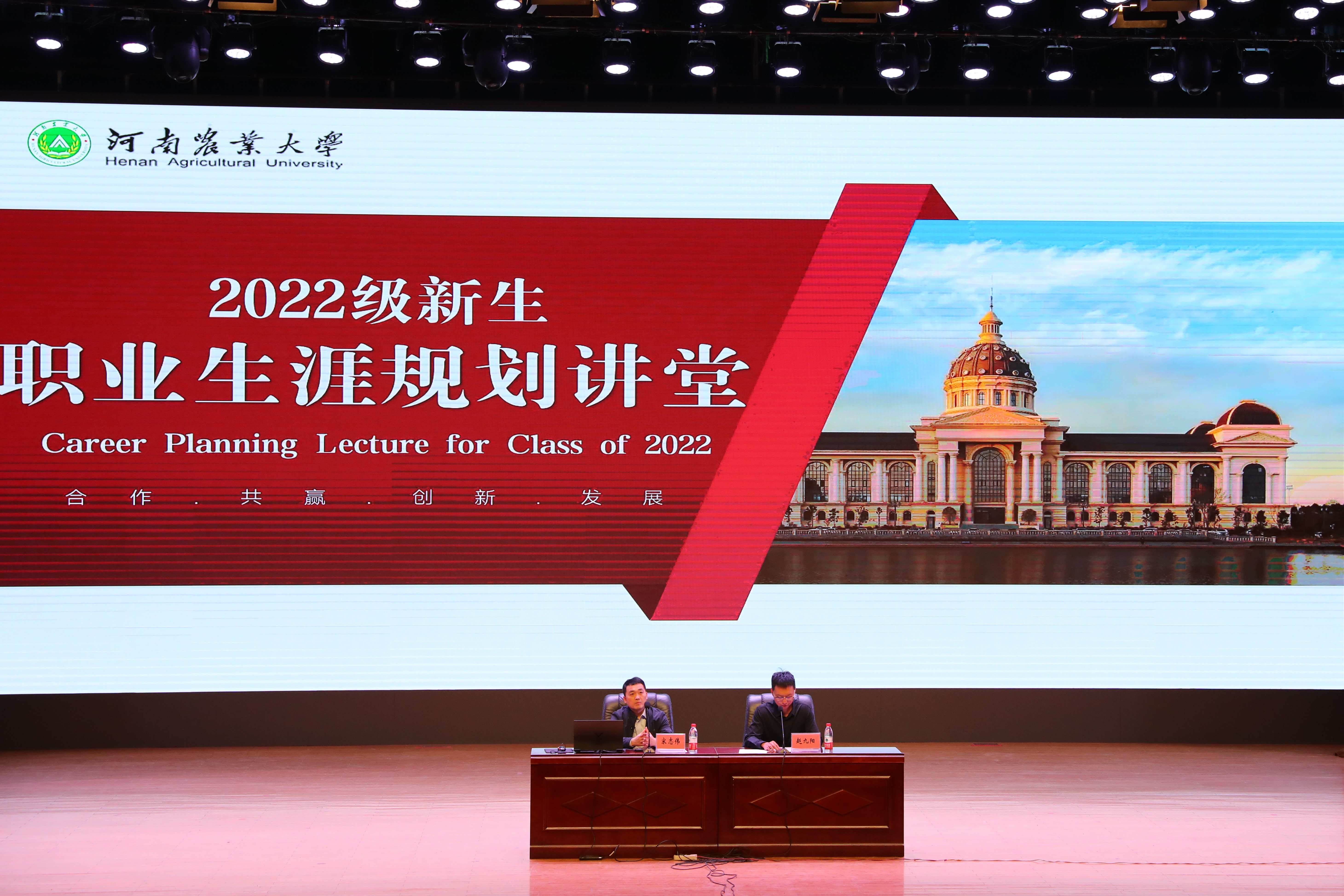 在文化路校区大礼堂举办2022级新生职业生涯规划讲堂。本次讲座由院党委副书记赵九阳主持,优秀校友宋志伟主讲,丝袜av