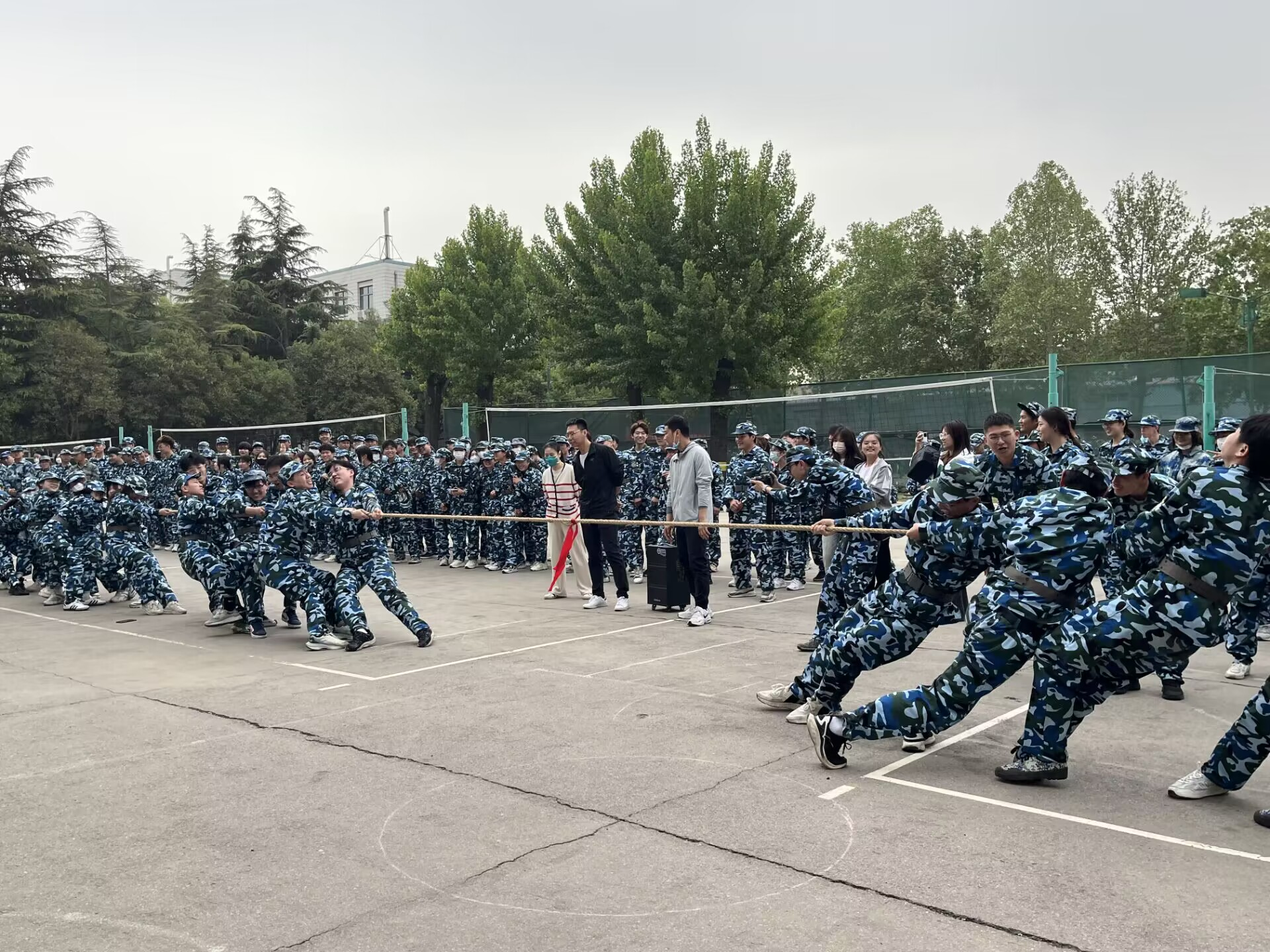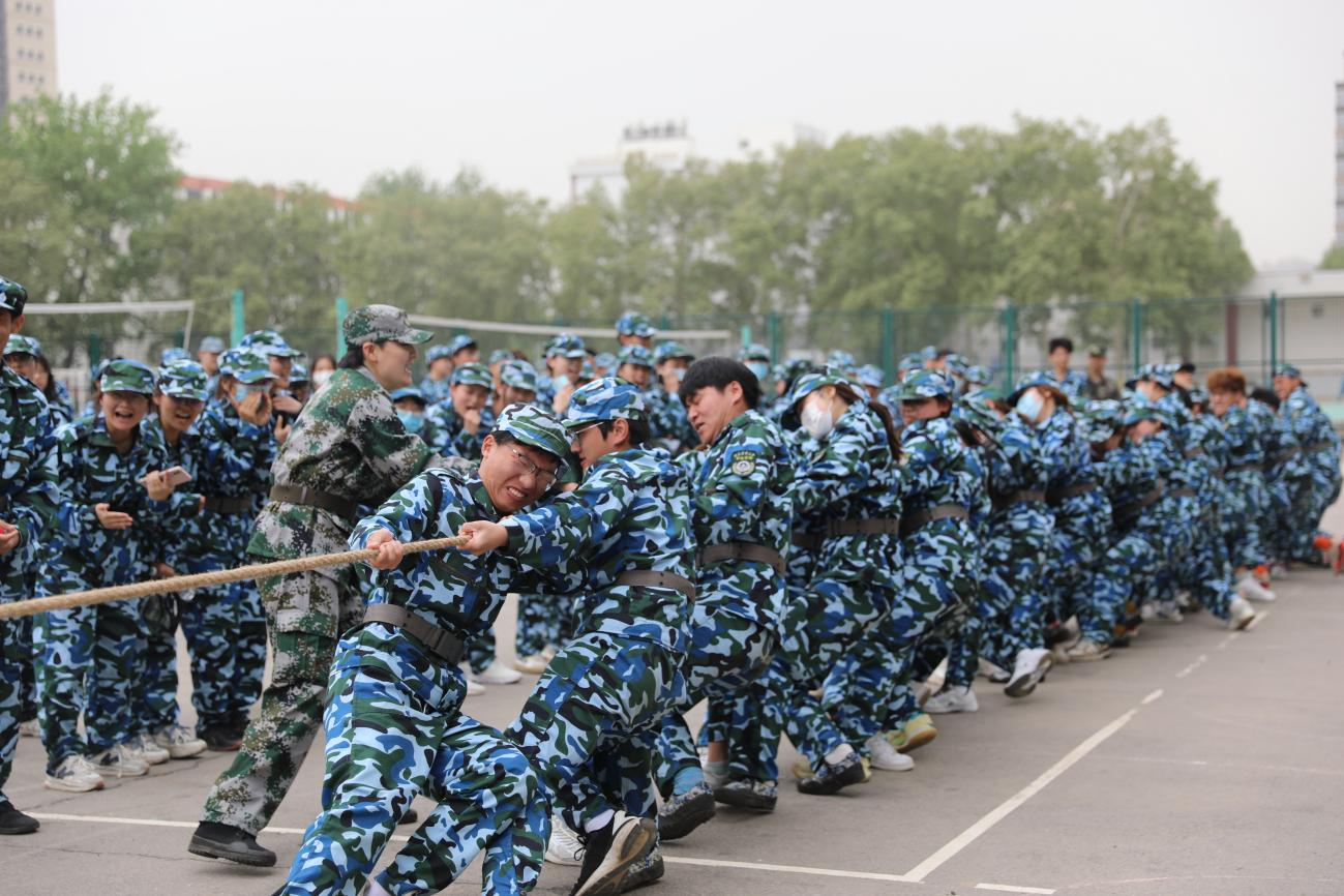 于文化路校区操场举办21级军训拔河比赛,2021级全体学生参加比赛,院党委副书记赵九阳,院团委书记徐珂,21级辅导员老师芦嘉俊到场观看比赛。