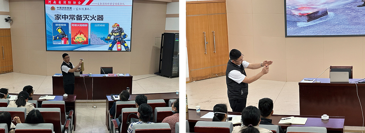 彭冲结合近年来发生的火灾案例,以视频、图文等形式为教职工普及了消防安全知识。同时从火灾的危害、火灾的预防、遇到火灾如何扑救及如何从火场逃生等方面详细介绍了火灾的形成过程、自救逃生以及灭火器等消防器材的操作方法,分析了家庭、办公、车辆等起火的原因,重点讲授了如何在最佳时间处置火情、危机时刻如何逃生自救等消防安全知识。