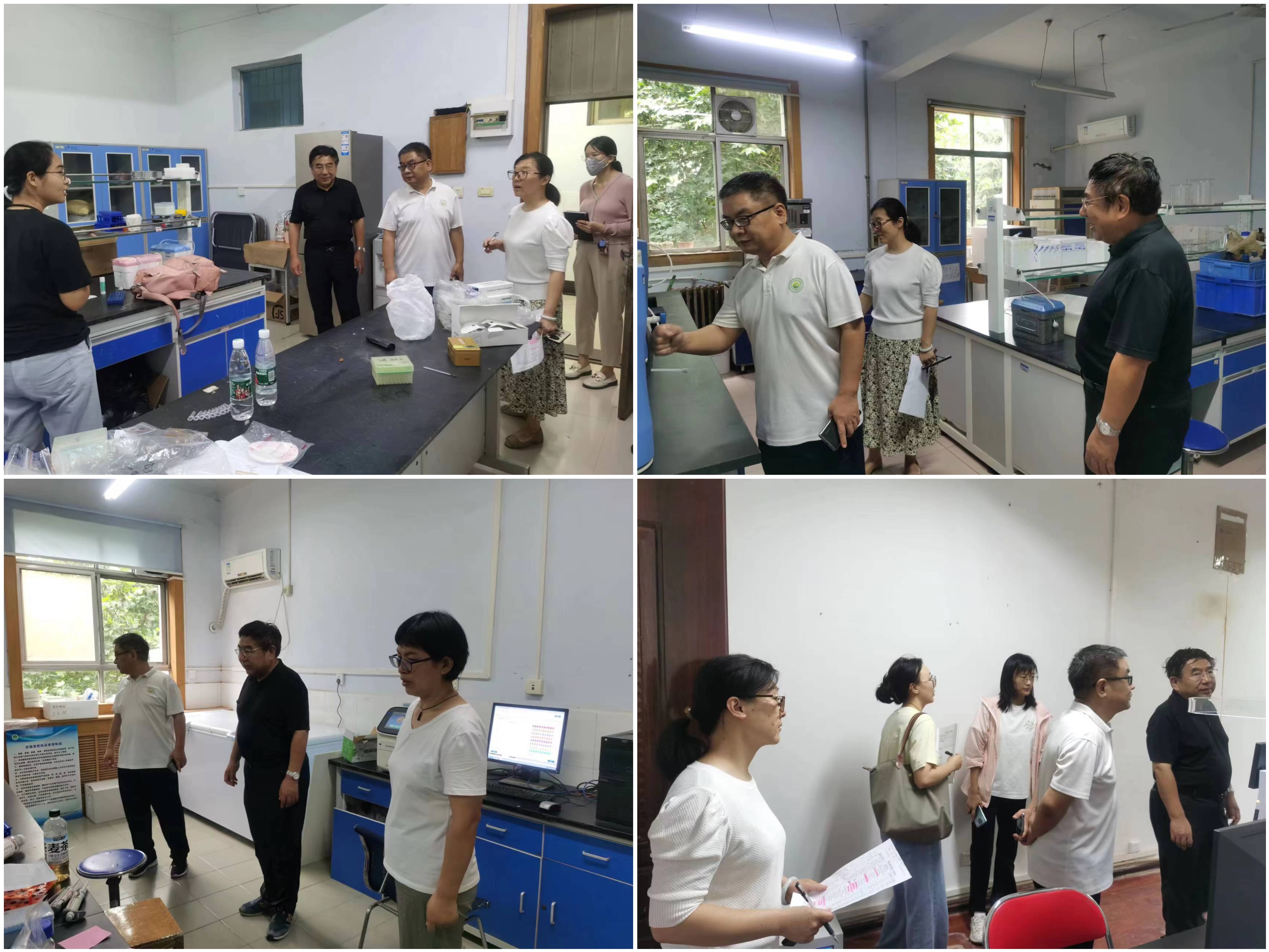 检查组重点查看了各实验室环境安全、危化品安全、用电用水安全、消防安全等管理措施落实情况,对部分实验室存在的化学药品未标明名称、做实验学生未穿白大褂、新搬入实验室废液暂存区标志不明显等问题进行了现场记录,并提出限期整改意见,要求相关实验室负责人务必整改到位,确保实验室安全稳定。检查工作结束后,领导小组对实验室信息牌制作、实验室内摄像头安置等工作进行了具体布署。
