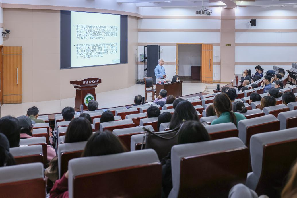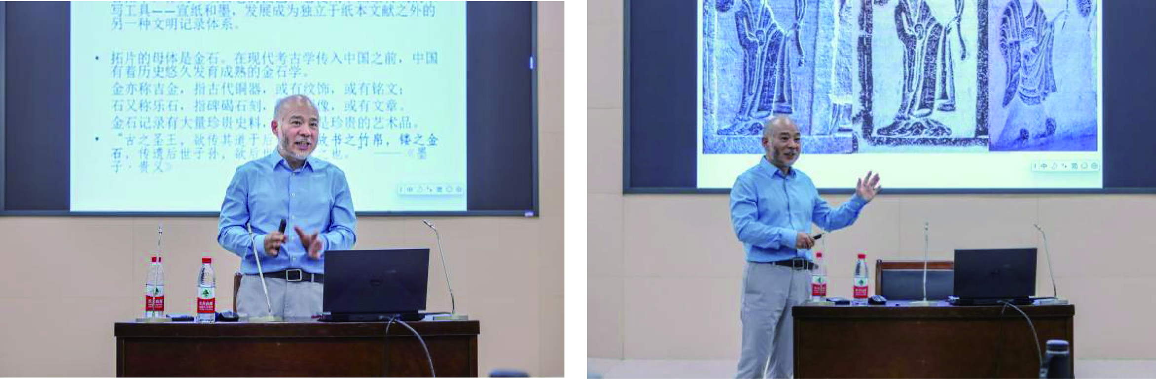 在讲座的最后,陈彦堂先生呼吁人们更多地关注和重视拓片这种技艺。并与多名教师进行了深入的交流。他们就拓片制作技术、古代艺术品保护和研究等方面进行了热烈讨论。通过这种互动交流,听众们不仅了解了陈先生的观点和见解,还获得了更多关于古代艺术品保护和研究的思路和方法。