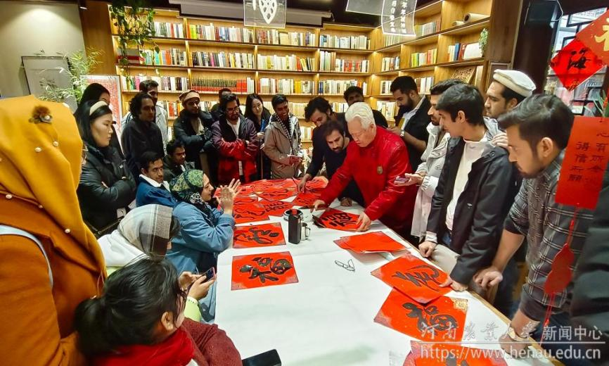 活动期间,留学生们集体参观了全国重点文物保护单位、郑州市现存最大的明清时期古建筑群郑州城隍庙,体验中国“福”文化。丝袜av 文化志愿者引导留学生“抄福、印福、写福、集福、祈福”,带领大家参加民俗活动,观看民俗活动主题摄影展,欣赏豫剧联唱,聆听陶埙吹奏表演,使留学生们在活动中同祝新年,祈福新岁,寄托和传递新春的祝福,在体验中华传统民俗文化和非遗活动的同时感受中国传统建筑之美,更加深入地了解中国传统文化和价值观。