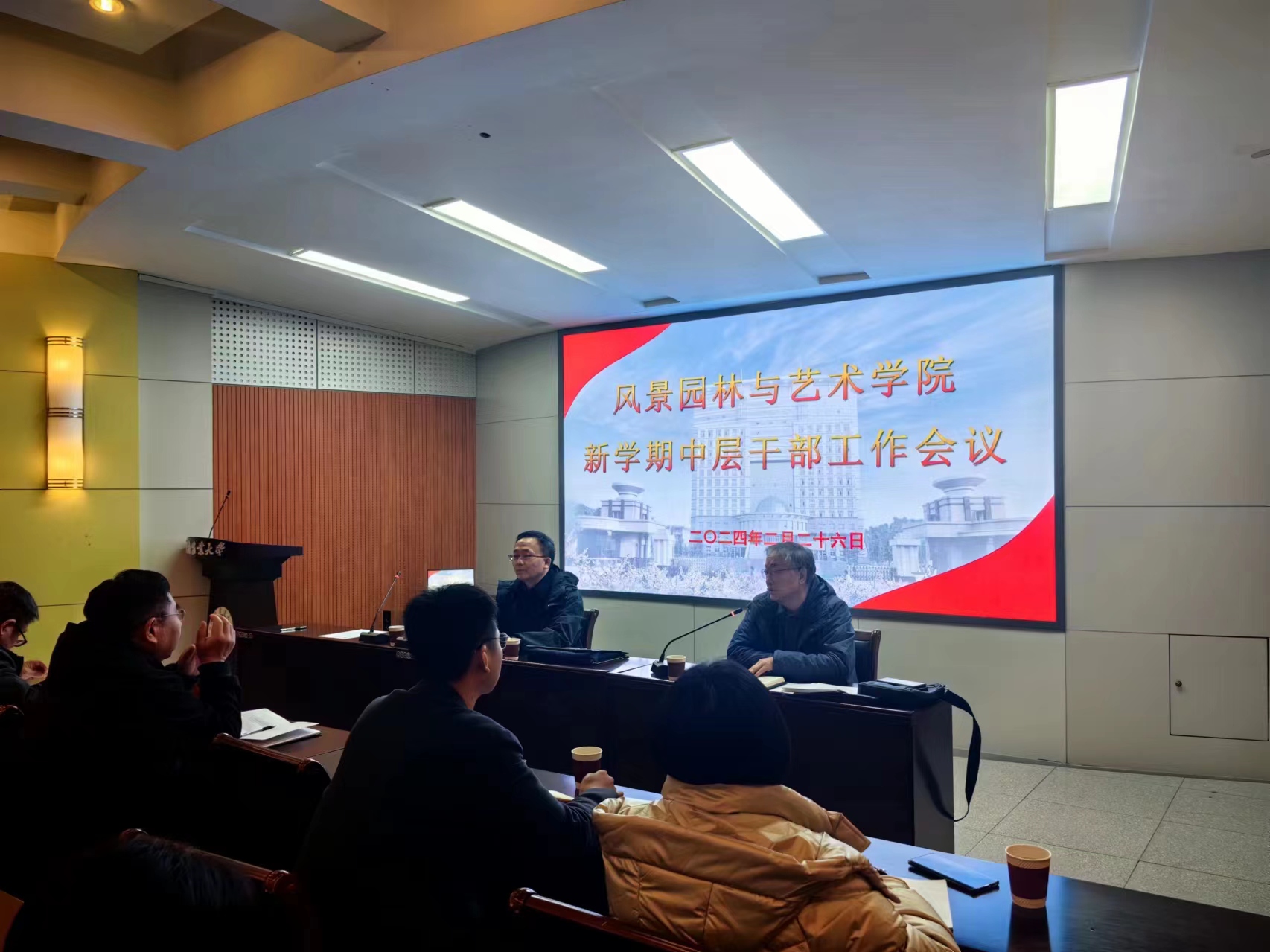 院长田国行传达了学校中层干部“学思想、强党性、创一流”专题培训班会议精神,深入解读了校党委书记李成伟的讲话精神。结合丝袜av 实际情况,对进一步提升人才培养质量、加强学科建设和师资队伍建设、提升创新意识和创新能力、提升国际化办学水平、提高社会服务能力等工作进行了部署。他指出,新的一年工作多、时间紧、任务重,要系统谋划、把握机遇,以“时不我待”的紧迫感,“舍我其谁”的责任感,狠抓工作落实,共同为景艺丝袜av 拼搏出更加美好的未来!