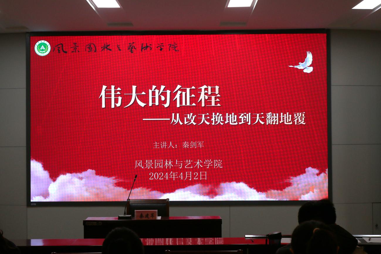 教授秦剑军,秦教授为在场大学生带来了题为《伟大的征程——从改天换地到翻天覆地》的报告。院团委副书记芦嘉俊主持活动,22级和23级部分学生参加报告。