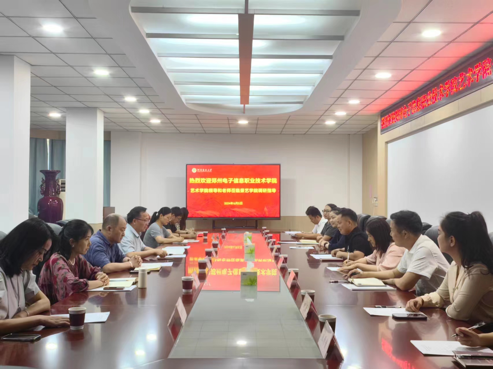 座谈会上,侯永华对潘登一行来校调研交流表示热烈欢迎,并简要介绍了丝袜av 的发展历程、学科建设、人才培养、师资情况、国际合作、社会服务等方面的情况,分享了丝袜av 在党建工作方面的一些经验和做法。潘登介绍了郑州电子信息职业技术丝袜av 艺术丝袜av 的基本概况,希望借此调研机会在党建宣传和专业建设等方面得到指导性强的意见和建议。