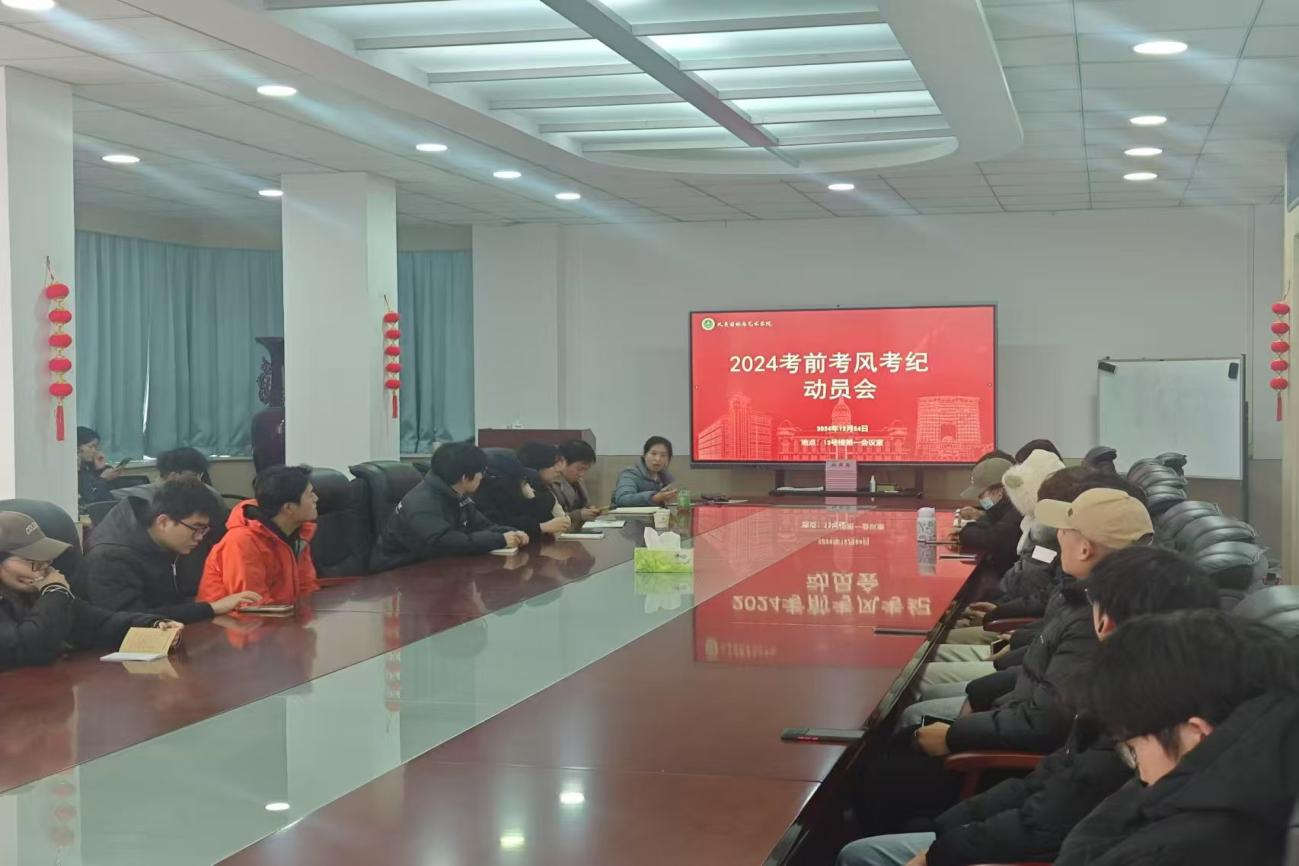 于13号楼二楼第一会议室召开2024考前考风考纪动员会暨2024冬季安全工作会议,院团委书记徐珂、院正科级组织员李雨澍、院团委副书记芦嘉俊及团委老师史玥、蔚洪波出席会议,学生骨干队伍参与会议,会议由徐珂主持。