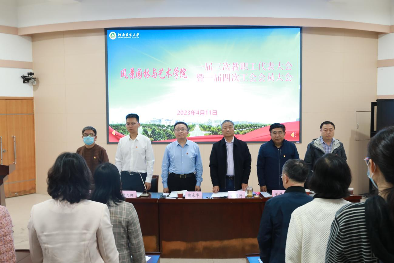 在文化路校区300人报告厅召开一届三次教职工代表大会暨一届四次工会会员大会。院党委书记侯永华、院长田国行、院党委副书记赵九阳,副院长孔德政、阴予兴、李永华,及35位教代会暨工会代表参加会议。会议由赵九阳主持。