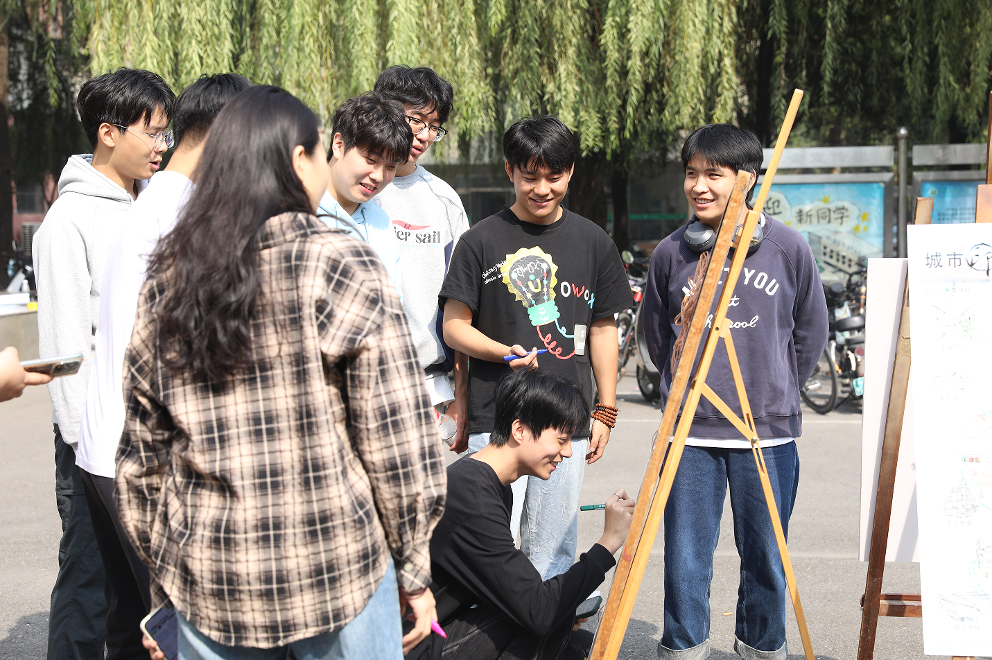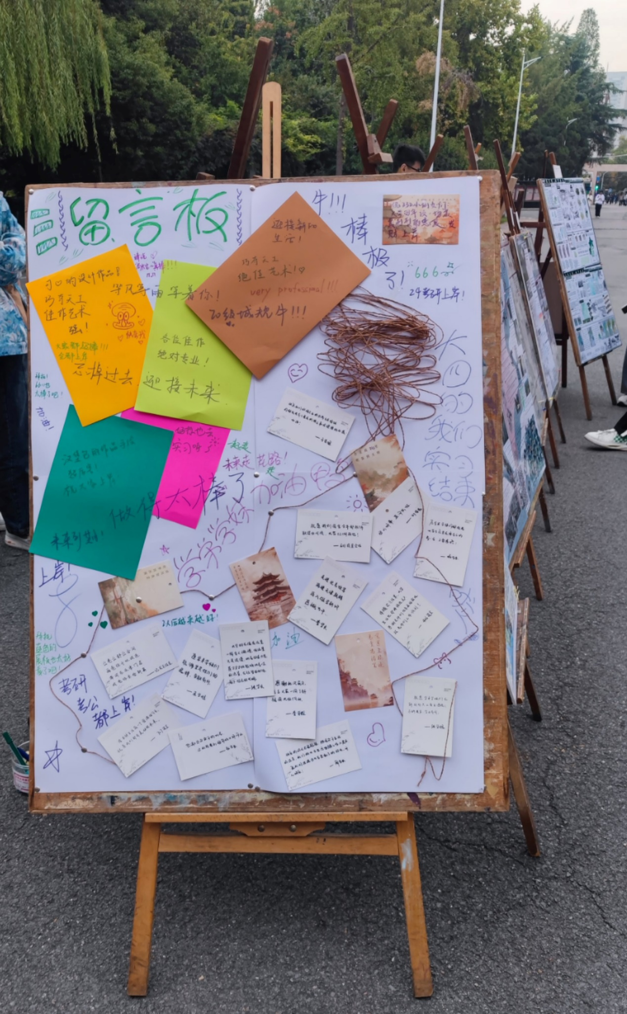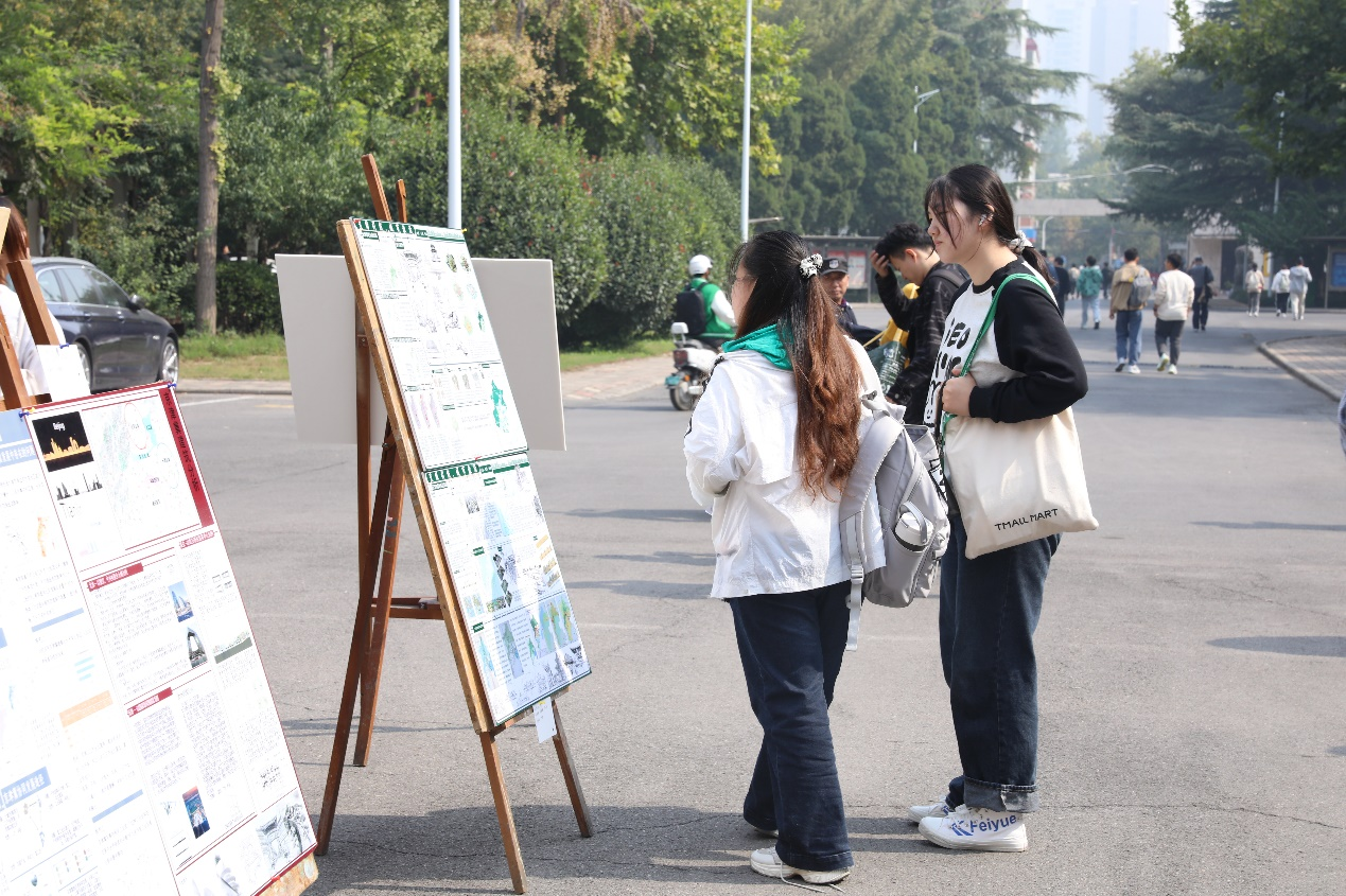 展览过程中,许多本院、外院师生驻足观看,不断询问相关专业问题,对城市规划相关理念及知识表现出极大兴趣,纷纷表示观展后对城市的发展有了更加深入的了解。通过问答也让同学们感受到了规划专业在城市建设中的重要作用,激发了准毕业生的职业责任感、归属感和使命感。同时,现场学弟学妹与大四准毕业生在留言板进行云互动,书写祝福鼓励与美好愿景。