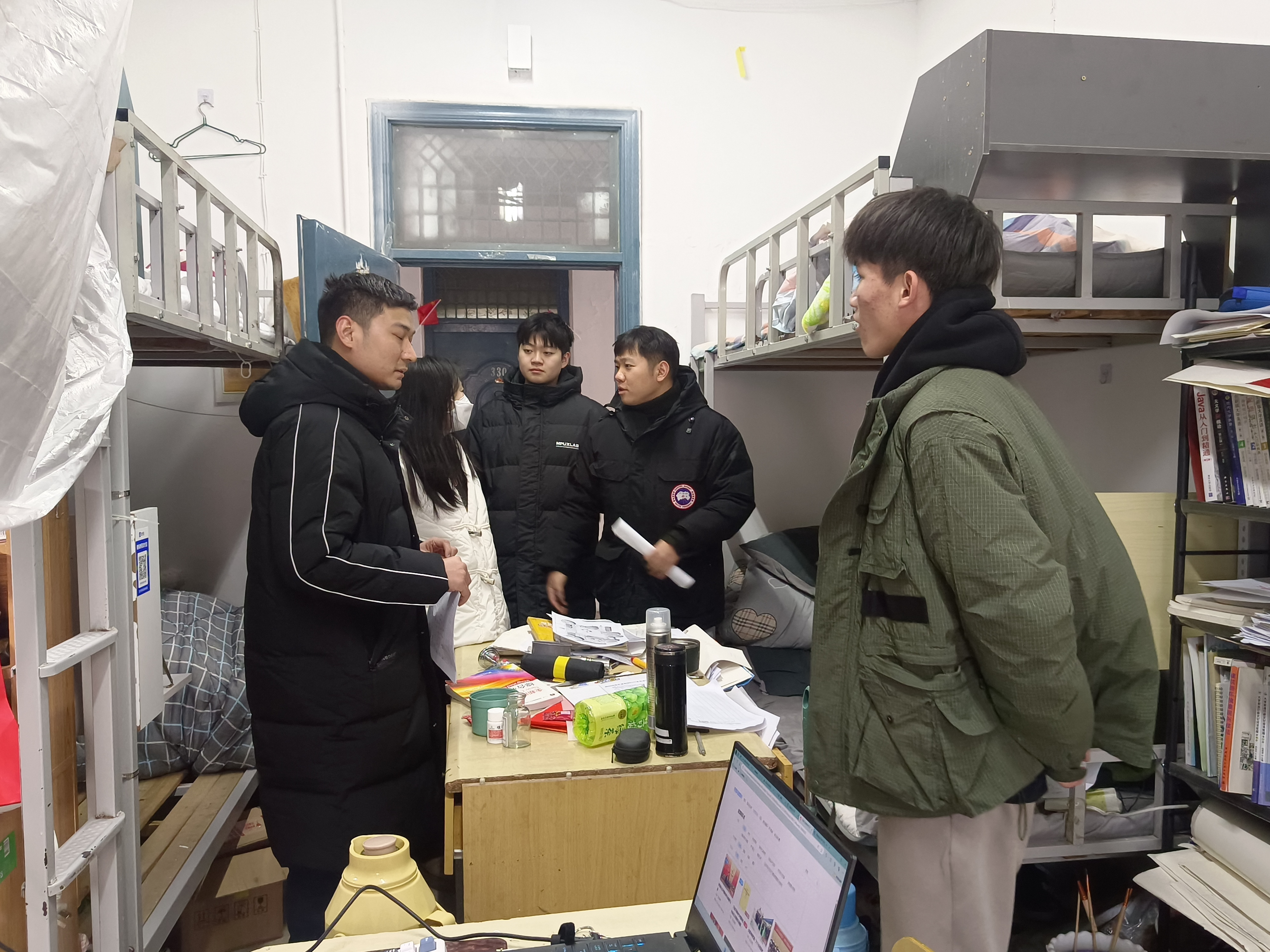 团委老师前往学生宿舍对即将离校的学生进行走访慰问,为学生送去温暖与关怀。